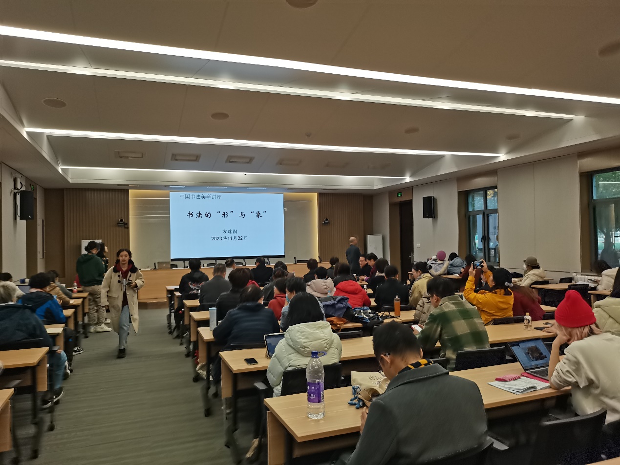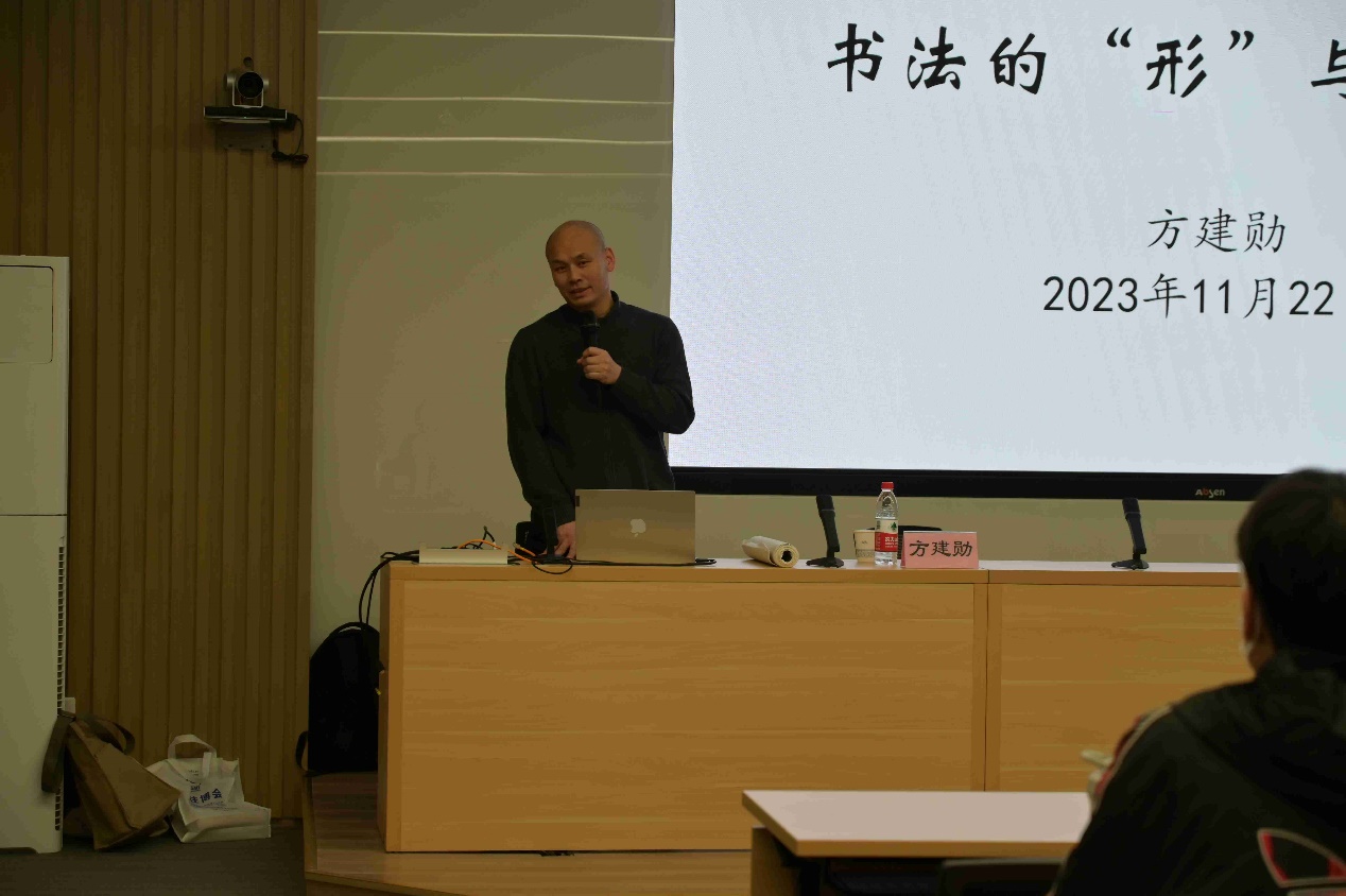2023年11月22日,由校工会主办、米兰milan官方网站承办的“书法的‘形’与‘象’”讲座在晨读厅成功举办。讲座邀请北京大学美学博士方建勋为主讲人,校工会常务副主席梁炳超、米兰milan官方网站党总支书记王明欣、校工会书法班特聘教师许森林与近百名校内外师生共同参与。
