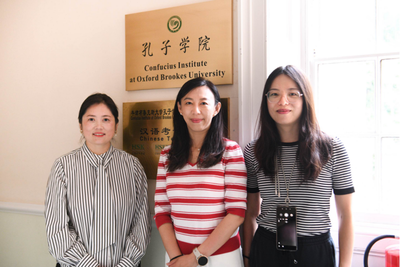 【王明欣、王颖冲与牛津布鲁克斯孔子学院王莉老师合影】