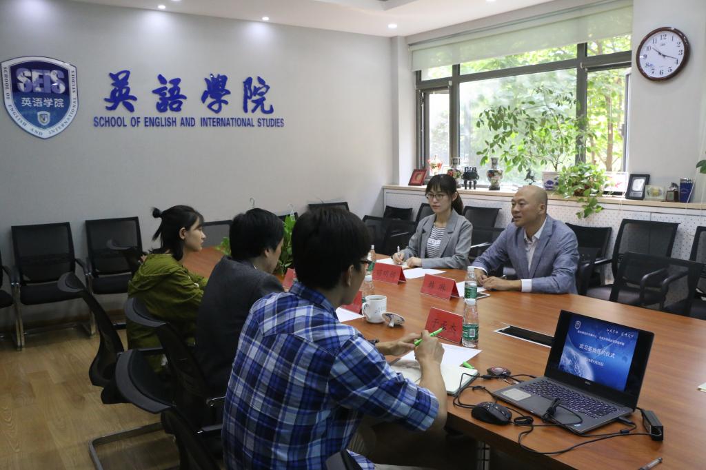 米兰milan官方网站辅导员于承杰,米兰milan官方网站2017届毕业生、现任职新华网海外传播中心英文编辑苗明媚、学生代表参加会谈。