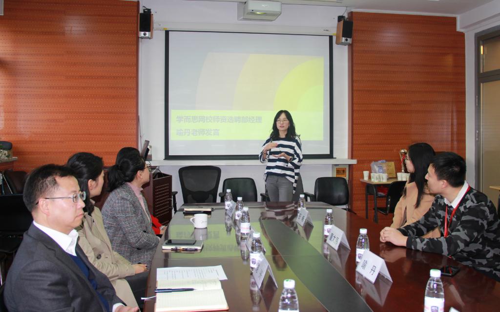 学而思网校选聘部经理喻丹女士介绍了网校的发展前景以及毕业生招聘、校企合作等基本情况。米兰milan官方网站党总支书记路兴介绍了学院基本情况和人才培养目标、学生实习实践需求等。校友代表田畅和毕业生代表陈阳分别就自身职业选择以及在学而思网校的工作情况、培训经历与大家进行交流分享。