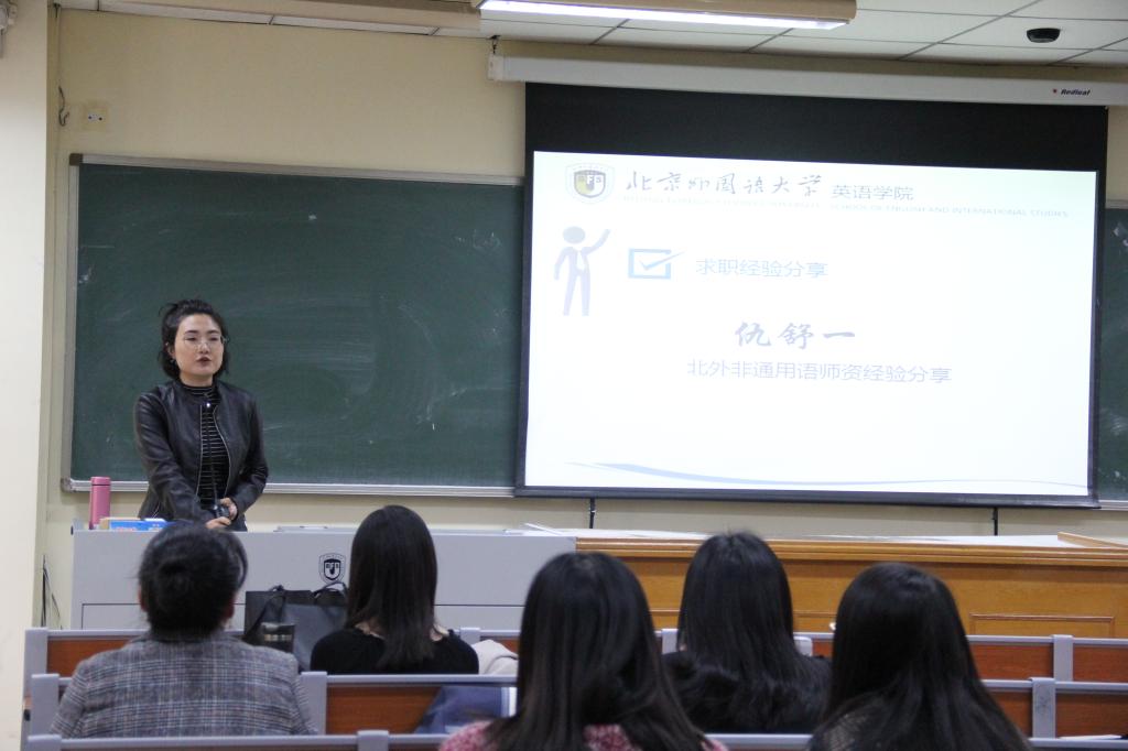 首先,是2019届毕业生的求职经验分享,共邀请了六位2019届毕业生分享了不同岗位的求职经验,仇舒一同学分享了自己申请北外非通用语师资项目相关经验,潘婷立同学向大家分享了自己如何成功通过外交部遴选,王雪意同学详细给大家普及了四川省选调生的报考流程,王昊同学给大家分享了自己成功进入北方装备有限责任公司的经历,姚敏超同学给大家介绍了自己报考全国妇联的历程,以及汤湘同学给大家分享了自己在面试人大附中分校的经验。