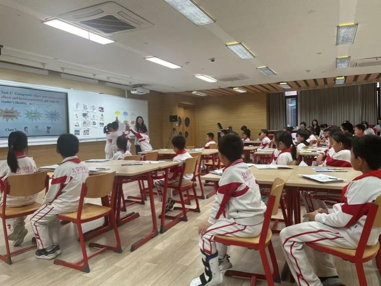 随后北外师生共同旁听了北京学校项目式语言学习知识与能力建构公开课,以及北京教育学院人文与外语教育学院协同创新项目负责人、副教授徐国辉和北京教育学院人文与外语教育学院副教授郄利芹对于小学基础教育课堂的专业点评。