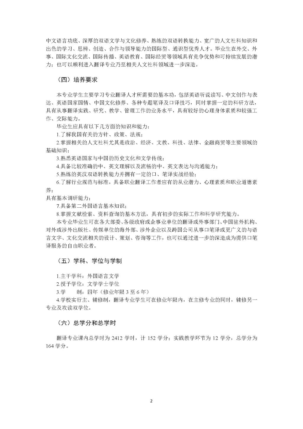 米兰milan官方网站翻译专业本科培养方案(2016)