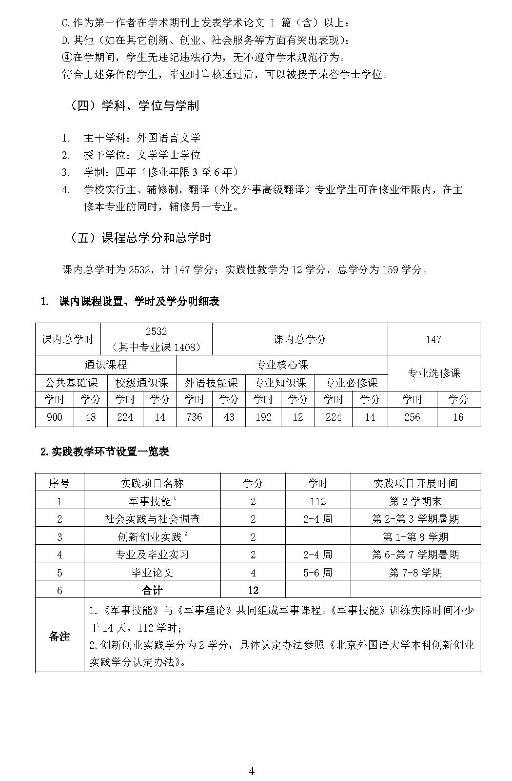 米兰milan官方网站翻译(外交外事高级翻译)专业本科培养方案(2021)