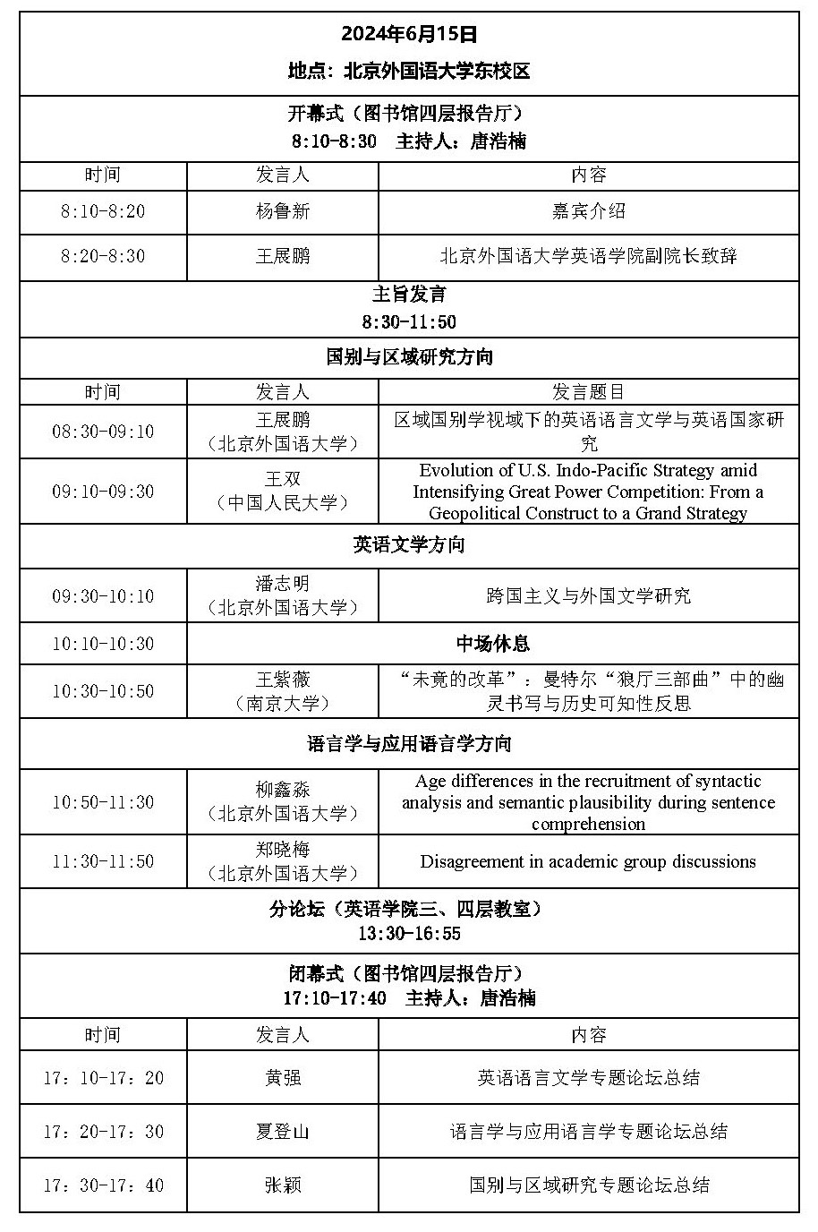 北京外国语大学2024年研究生高端学术论坛